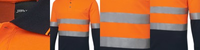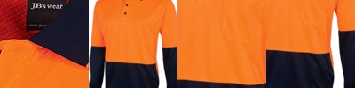 JB-6HVSL Mens Hi Vis Long Sleeve (D+N) Trad Polo