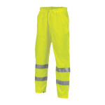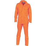 - This Material does not comply with AUS /NZ HiVis Standard. Waterproof, two flap side pockets, foldaway hood. 3/4 Length Jacket & elastic side pants with leg press stud closure.